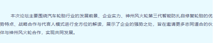 【南寧站】“倡導(dǎo)安全出行,打造千城萬(wàn)店”神州風(fēng)火輪智能防扎自修復(fù)輪胎財(cái)富論壇